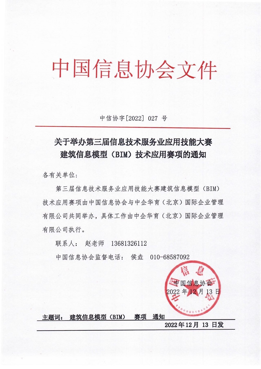 关于举办第三届信息技术服务业应用技能大赛建筑信息模型 (BIM)技术应用赛项的通知