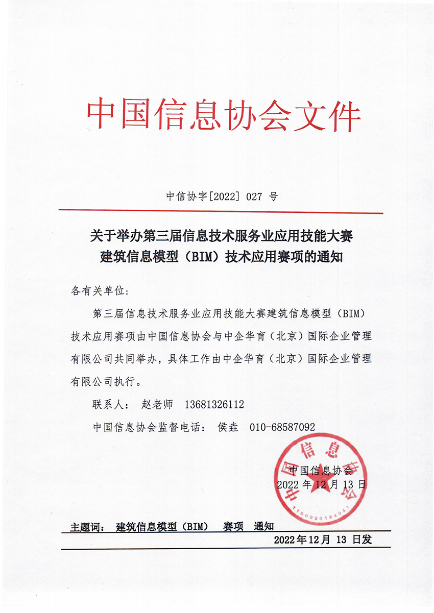 第三届信息技术服务业应用技能大赛 建筑信息模型(BIM)技术应用赛项的通知