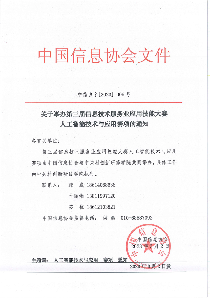 第三届大赛人工智能技术与应用赛项通知