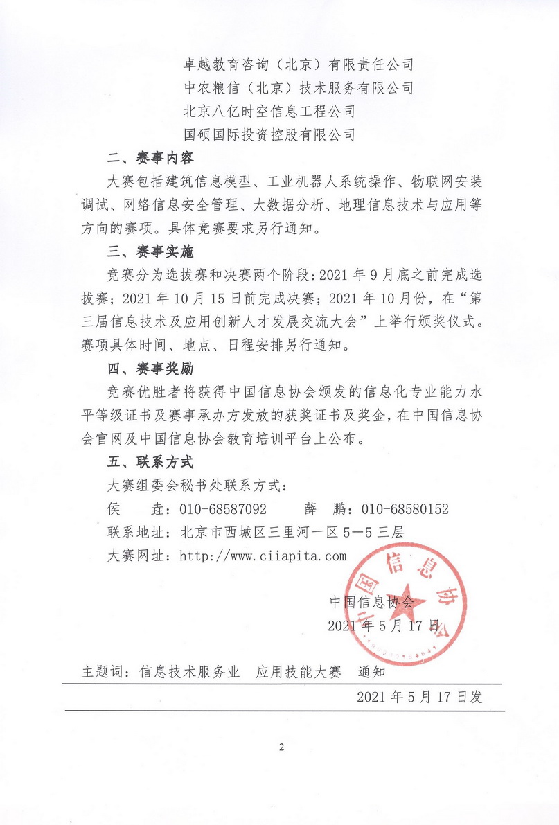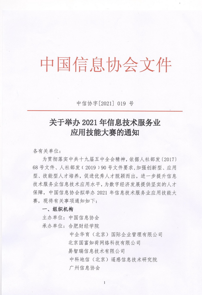 关于举办2021年信息技术服务业应用技能大赛的通知