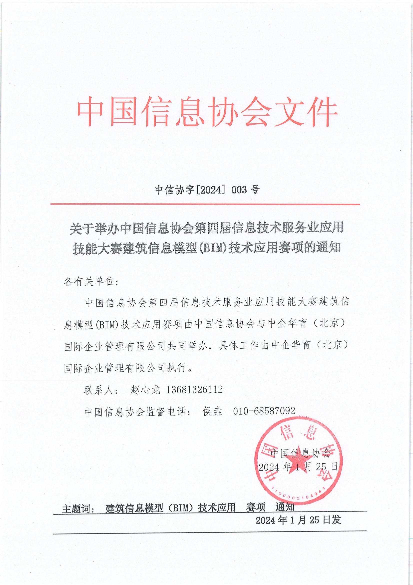 关于举办中国信息协会第四届信息技术服务业应用 技能大赛建筑信息模型(BIM)技术应用赛项的通知