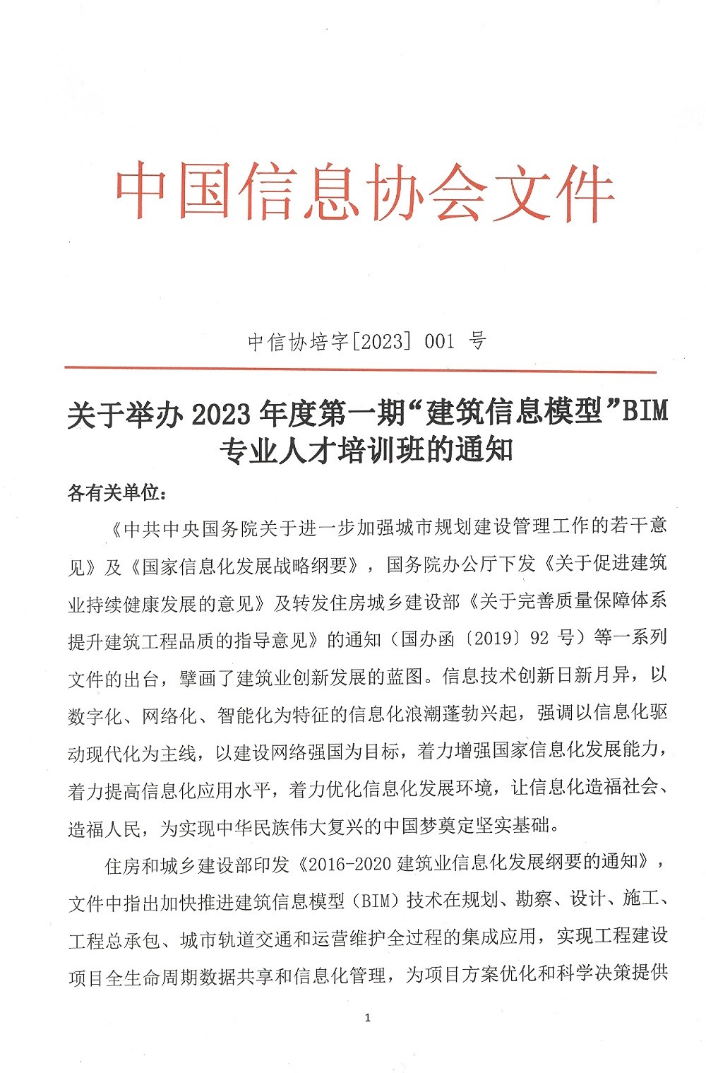 关于举办2023年度第一期“建筑信息模型”BIM专业人才培训班的通知