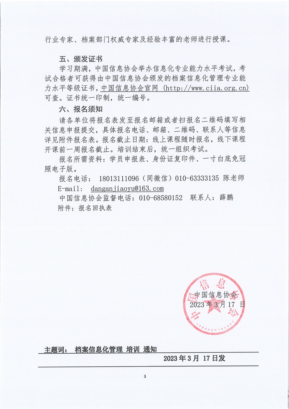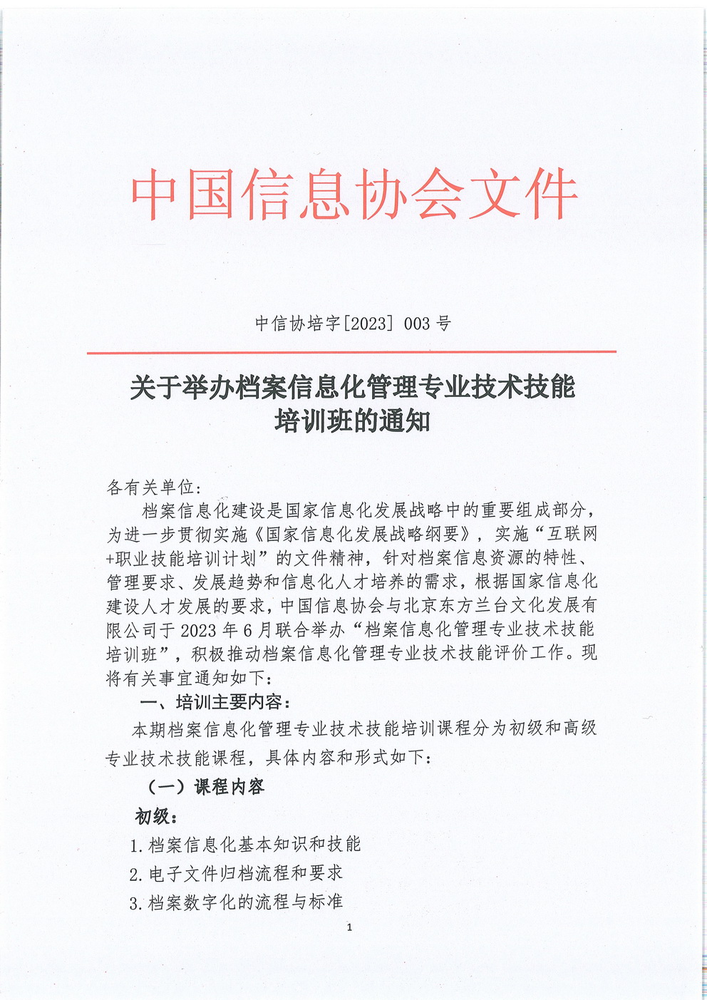 关于举办新一代信息技术在数字档案馆(室)建设中的应用暨档案信息化管理高级培训班的通知