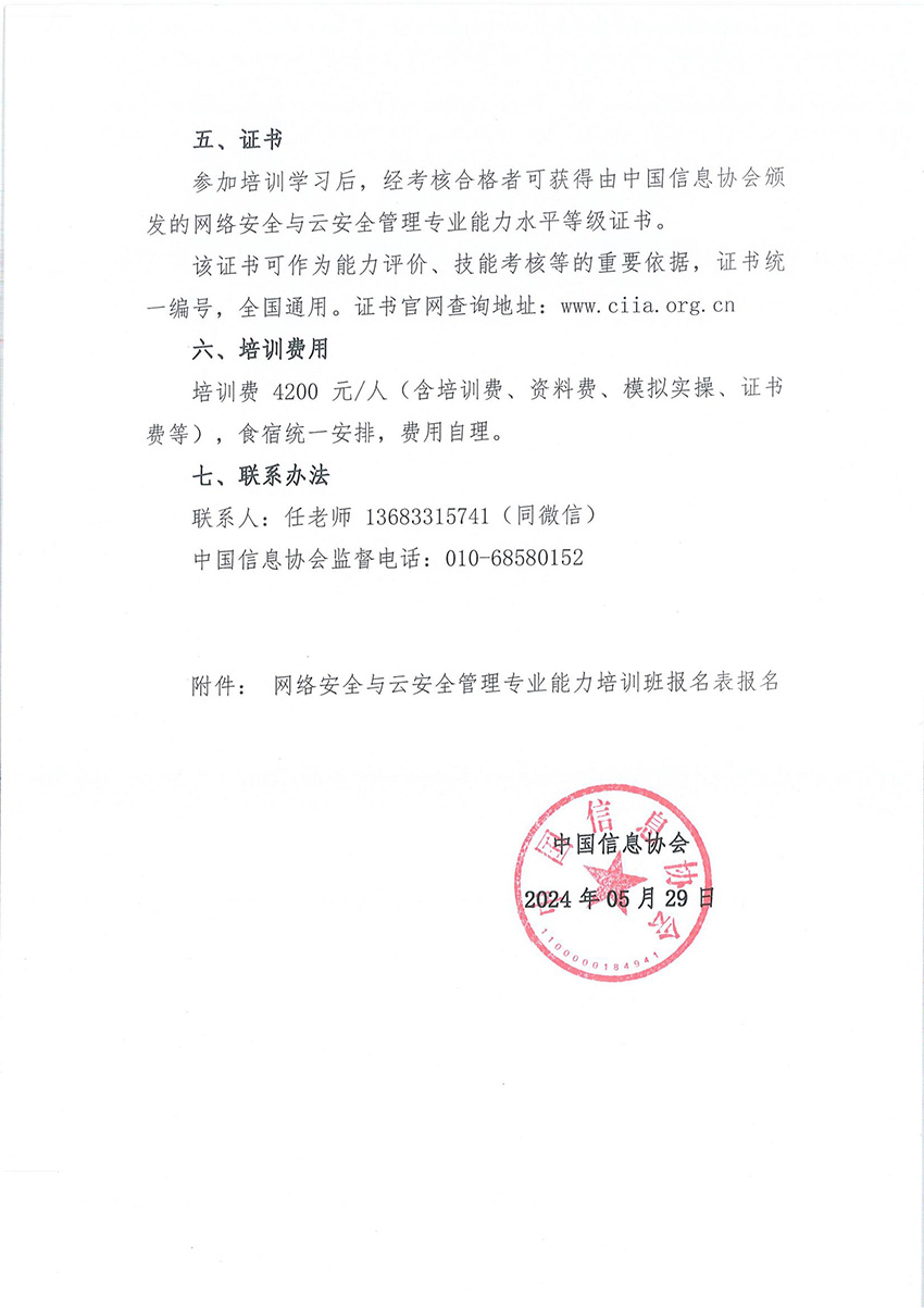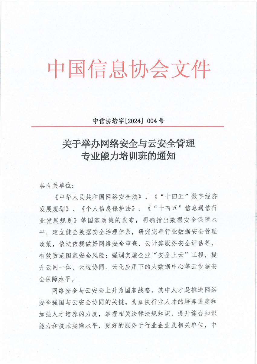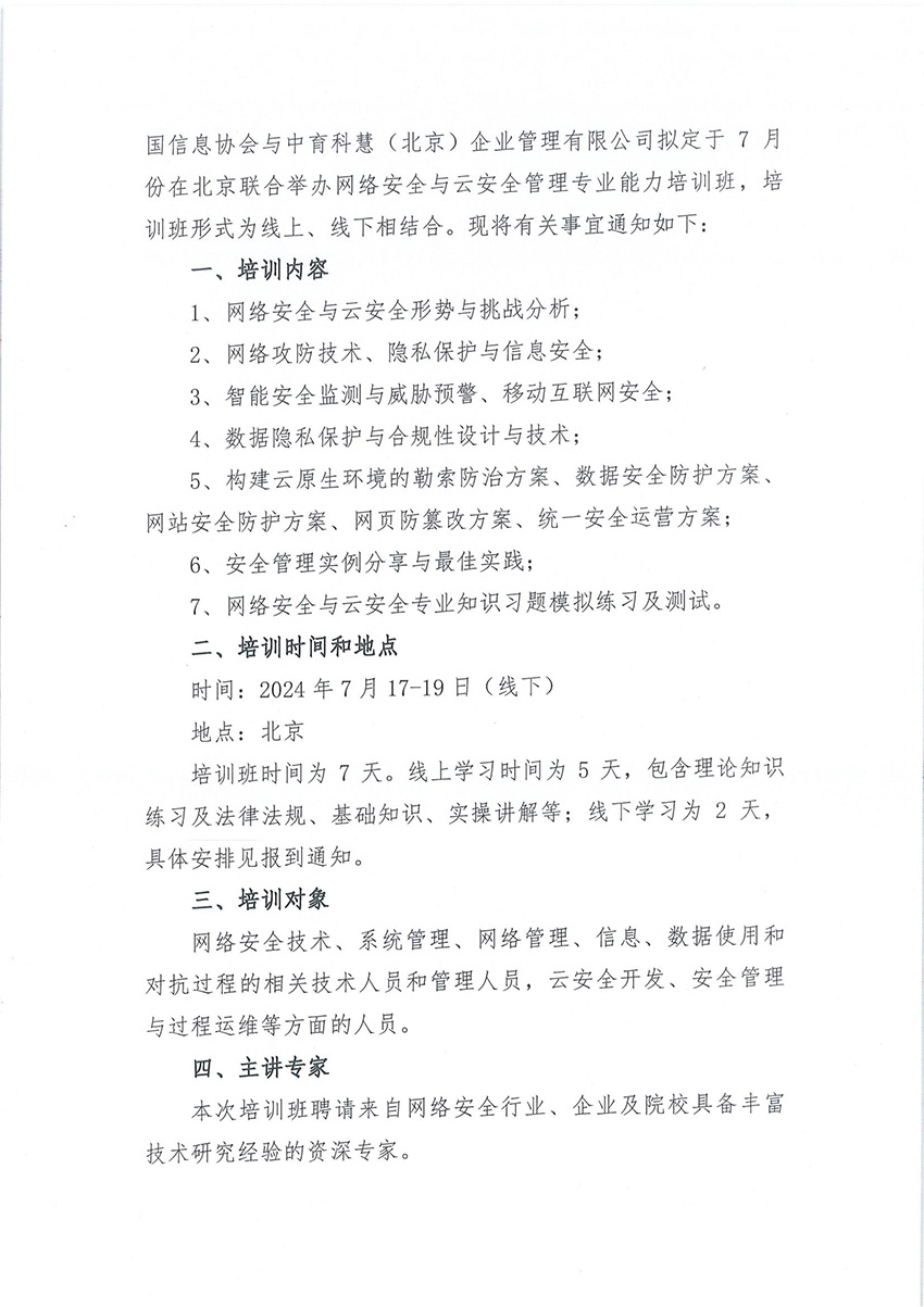 关于举办网络安全与云安全管理专业能力培训班的通知