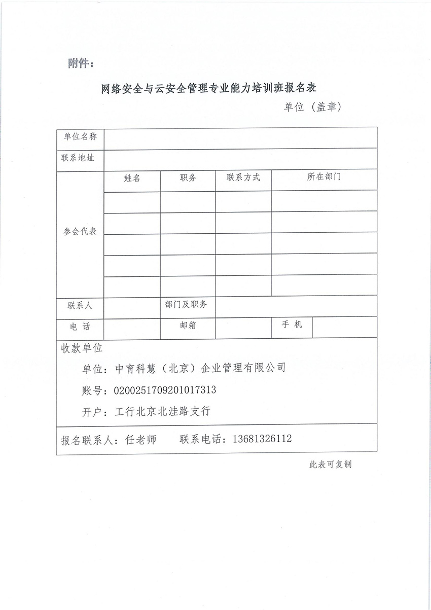 附件:网络安全与云安全管理专业能力培训班报名表