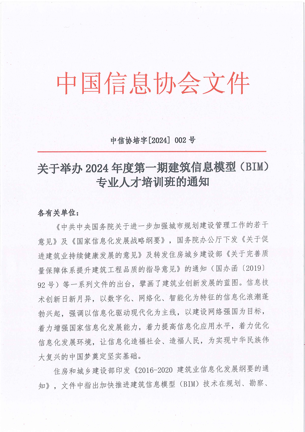 关于举办2024年度第一期建筑信息模型(BIM)专业人才培训班的通知