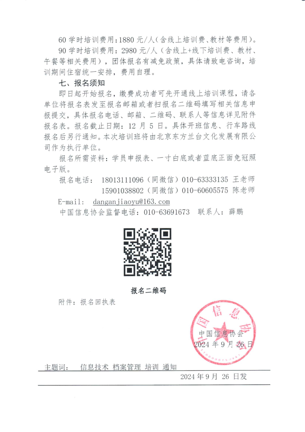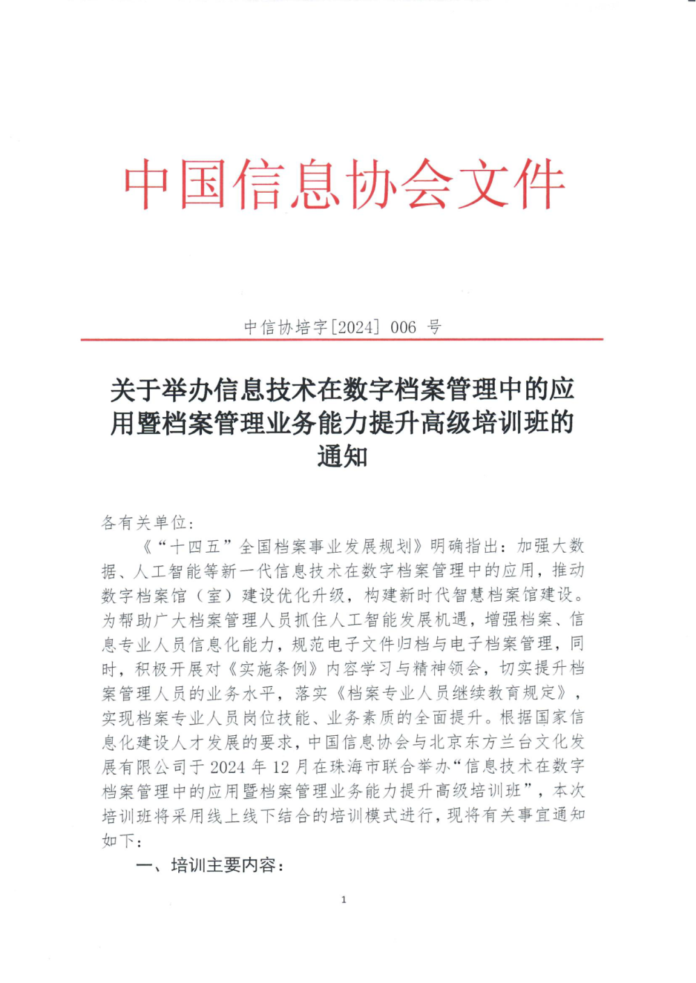 关于举办信息技术在数字档案管理中的应用暨档案管理业务能力提升高级培训班的通知
