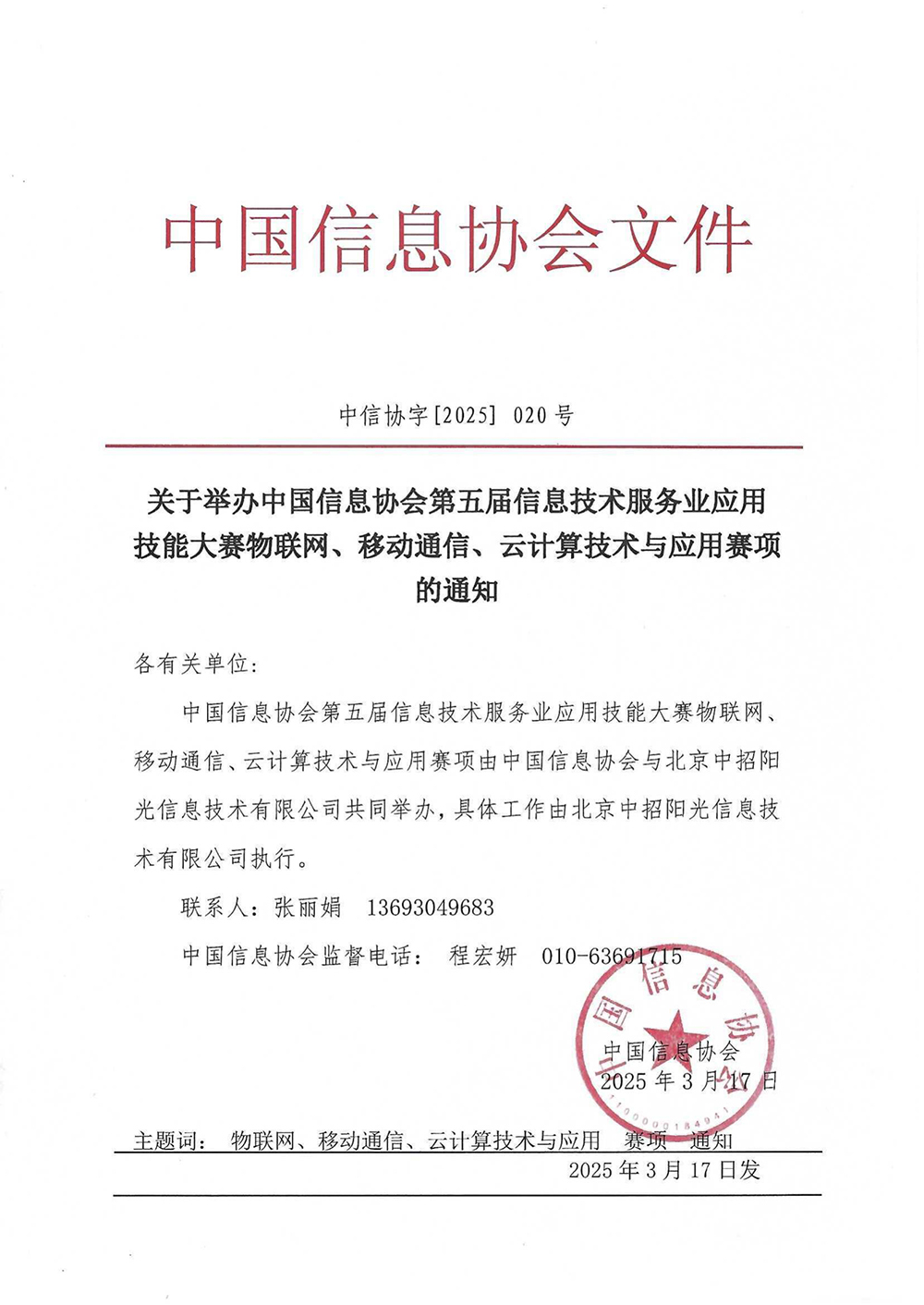 关于举办中国信息协会第五届信息技术服务业应用技能大赛物联网、移动通信、云计算技术与应用赛项的通知