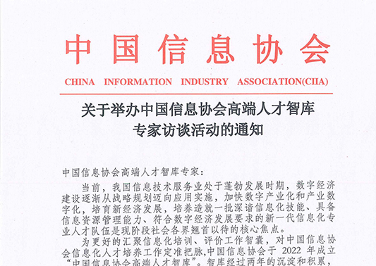 关于举办中国信息协会高端人才智库 专家访谈活动的通知